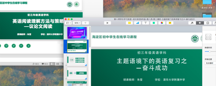 疫情袭来,市、区积极组织开发在线教学资源。作为海淀区英语学科带头人,我深知在这个关键时刻要主动承担录制课程任务,把高三复习教学的重要课程资源以有效的方式传递给学生。录制过程中,我也得到了教研员和同组老师的多次指导。大家力争在教学内容、展示形式等方面给全区的学生提供高质量的课程,助力他们在特殊时期顺利完成线上教学。
