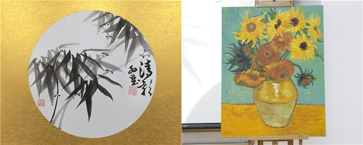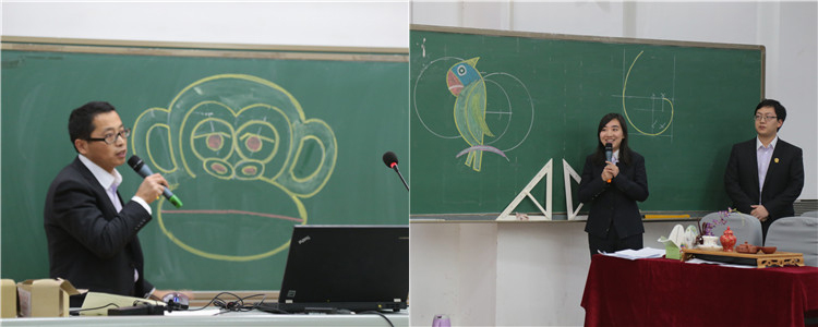 语文组教师以“为什么要背唐诗”开始,以朗诵和板书的形式向大家展示了语文学科的基本功和传承文化的责任;体育组的教师展示了足球、篮球、排球、体操、武术等项目的全面基本功;历史组的教师则以一道高考题入手展开,从历史层面深度解析了有关茶的文化知识和历史背景;化学组的教师不仅讲述了丰富的知识,还用奇特的碘钟实验、铝热反应、焰色反应、指示剂变色等实验让大家体验到了化学学科的色彩和神奇;数学组的教师们用椭圆、圆、线段组合成了美丽且充满童趣的图形,他们还展示了如何运用几何画板来制作“数学”生肖贺年卡;最后,美术组的教师们呈现了他们现场复制的梵高的《向日葵》,李红星老师现场即兴创作的中国水墨画《竹子》为学科的展示环节画上了完满的句号。