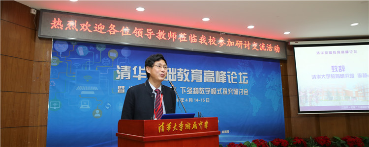 清华大学教育研究院李越教授为研讨会致辞,提出互联网加上任何一个行业都将发生巨大的变革,技术革命对于各行各业都有巨大的影响,互联网既为教育带来了机遇,同时也带来了挑战,但不论技术如何发展,教育都将是实践性的学科。