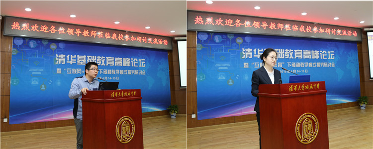澳门网上博彩物理教师潘天俊(左)、教学管理与研究中心主任朱培做大会交流发言
