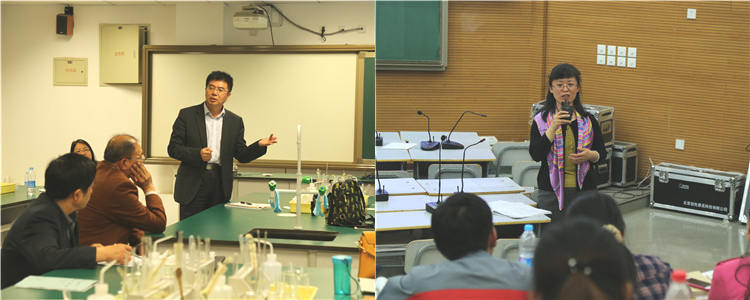化学特级教师崔峰点评(左) 海淀进修学校英语教研员孙铁玲点评(右)