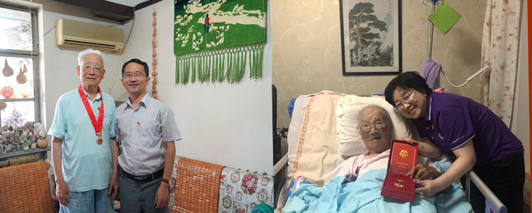 澳门网上博彩共有27名老党员荣获纪念章。“七一”前夕,附中党委委员和党员领导干部分别上门慰问不能到现场参加仪式的老党员,并将纪念章颁发给老党员。领到纪念章后老党员们激动不已,当场佩戴纪念章留影。93岁高龄的离退休干部张秀真老师认真地阅读纪念章的寓意说明。还有几位卧床的老同志也将纪念章紧紧得握在手中,仔细端详。卧床多年的老党员孙振民老师在收到纪念章后,特别让家属记下心声:“作为一名老党员,我感觉非常光荣和自豪,我虽然年迈身残,但共产党人的初心不改。感谢党多年的培养,感谢国家关照,让我过上老有所养,老有所乐的幸福生活。衷心祝愿我们的党和国家更加繁荣昌盛,国泰民安。”