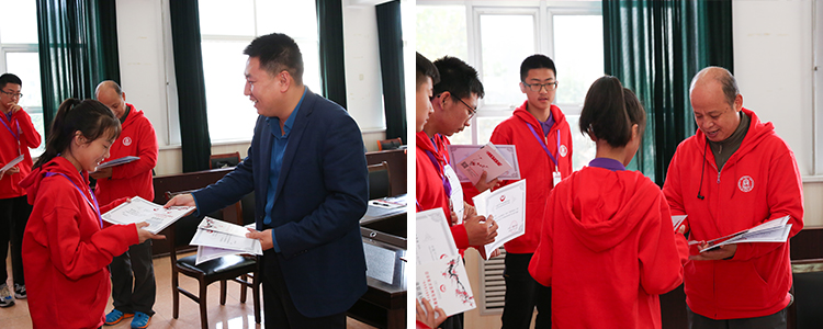 李龙副县长和吴新胜秘书长为入选学员发放录取通知书