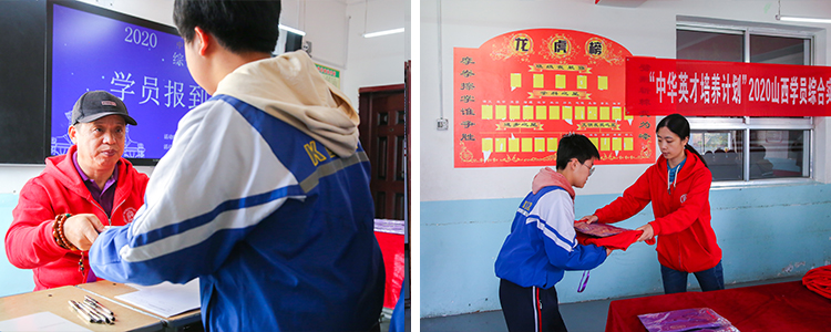 10日上午,吕梁市和岢岚县的10位入选学员来到岢岚二中进行报到,中华英才培养基金的老师们为学员准备了服装、基金手册、文具、证件等资料。