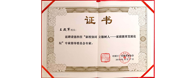 王殿军校长受聘为家庭教育专家指导委员会首批专家