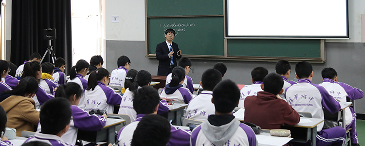 上海市曹杨第二中学校长王洋作了《新高考改革与高中特色发展》主题讲座,他首先对高考改革情况进行简要概括,随后结合上海市高考改革政策和曹杨第二中学的实际情况,介绍了学校为适应高考改革在教育教学、课程设置、学生活动等方面进行的一系列变革。王洋校长强调改革的重点是培养学生特色、个性发展,发挥每位学生的特长,因材施教,保证不同兴趣、不同程度的学生都能得到相同的培养。