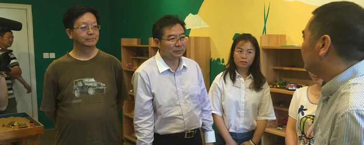 王殿军校长(左2)在成都七中领导教师的带领下参观学校心理教室