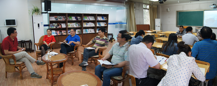 王殿军校长(中)及教师与成都七中初中学校领导教师座谈