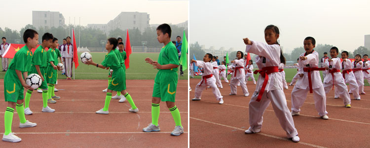 10月7日中午,在学生田径比赛项目全部结束后,澳门博彩在线上地学校、澳门博彩在线朝阳学校足球队进行了精彩的表演赛。