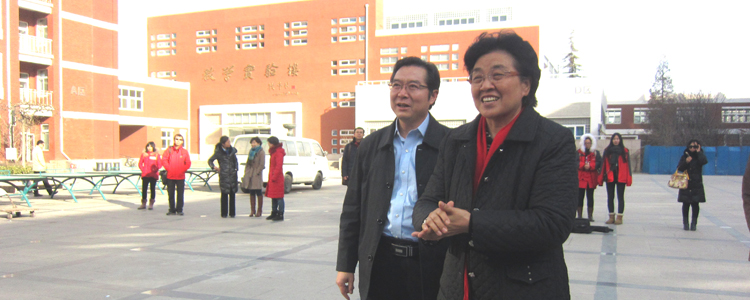 王殿军校长(左)与田淑兰理事长看望英才班学员与澳门博彩在线结对学生