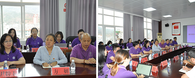 方妍在南涧一中的欢迎会上讲话,表达了对南涧一中教育情况的深度关切,并对南涧一中教育教学进行实地考察。南涧县教育体育局副局长袁国成、政策法规股股长杨兴蔡等全程陪同。