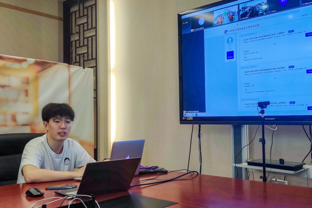 根据云南和黑龙江两省情况,初选工作均由当地教育局组织学生在县内集中线下完成。复选的在线测试环节均采用线上模式,学生登录相关网站进行在线测评;面试环节由当地教育局和学校共同组织,基金会的老师们通过腾讯会议与学生连线进行面试工作。