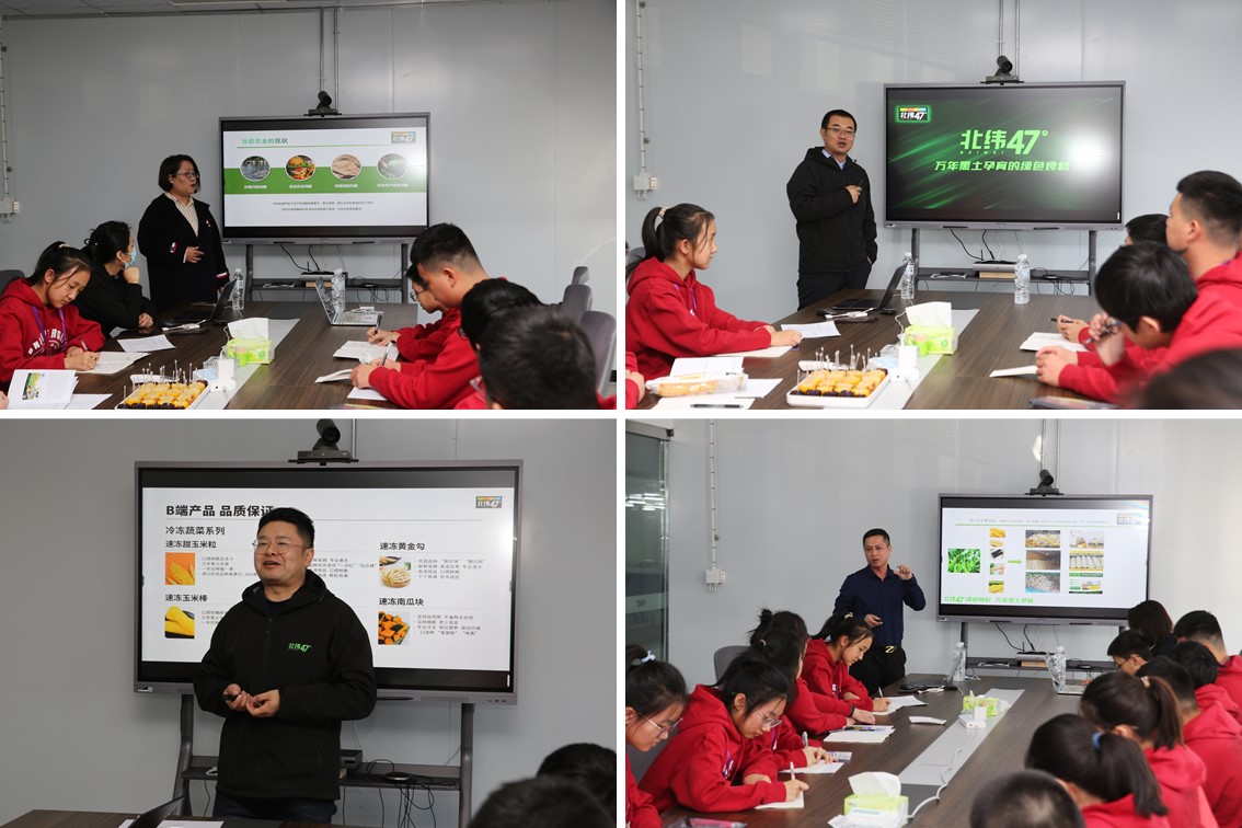 学员们来到北纬四十七绿色有机食品有限公司参与综合实践活动,首先由“成志英才培养计划”项目研学导师朱红梅老师为学员明确活动流程与任务目标,为学员分组并发布任务。北纬四十七绿色有机食品有限公司的生产厂长李春利、副总经理郑春秀、质量副总监董政伟和行销负责人于滨作为培训导师分别为学员带来绿色有机食品的相关主题讲座,帮助学员了解绿色农业基本知识、绿色有机农产品标准以及本企业绿色有机产品的生产运营模式和销售优势等。学员通过讲解,对于家乡的特色农业和绿色有机农产品的概念得到初步认识,通过同类有机、非有机、半有机农产品对比和实物品尝,逐步产生直观认识。