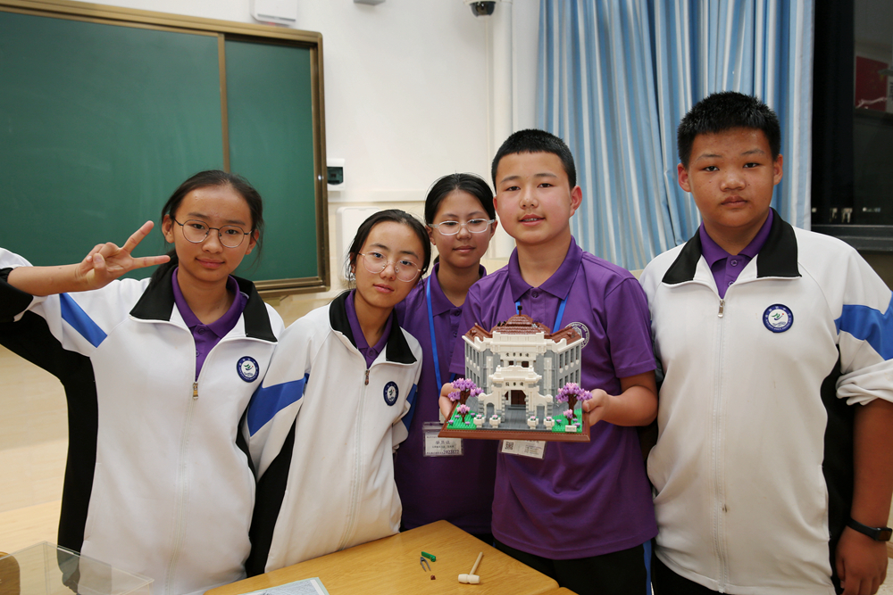 学员们拼装清华标志性建筑模型