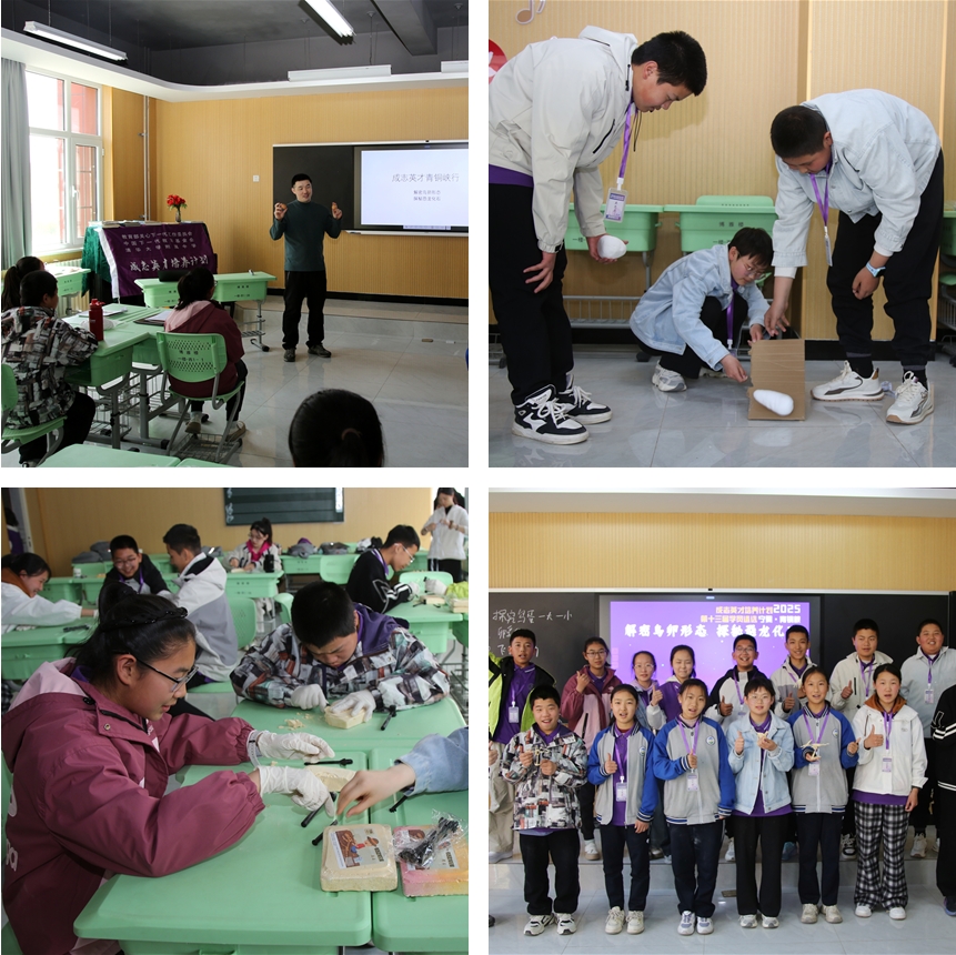 此次遴选夏令营活动中,特别融入实践性与探索性课程,旨在培养学员们的社会责任感与科学探究精神。4月12日-13日,学员们从实验教室走向户外课堂,在科学与工程的碰撞中开阔视野,在动手与思考的交融中激发灵感。澳门网上博彩生物竞赛教练房鹏老师为学员们带来了一场精彩纷呈的生物综合实践课。课程围绕“鸟蛋的形态之谜”展开,结合实物观察与小组实验,引导同学们从飞行能力、生存环境、产蛋机制等角度,探究鸟蛋为何一头大一头小、为何呈现特定椭圆形,并用实验验证“蛋形与滚动距离”的关系。在随后的化石探秘环节中,学员们化身“少年考古学家”,在模拟现场中体验恐龙化石的挖掘与分类识别,感受远古生物演化的奇妙轨迹。房老师的课程既有扎实的科学知识,又有高度的趣味性与启发性,点燃了学生们对自然科学的浓厚兴趣,也让他们在动手操作中体会到科学探究的严谨与魅力。正如房老师所说:“我们今天共同种下了科学的种子,也一起见证了科学的快乐。”