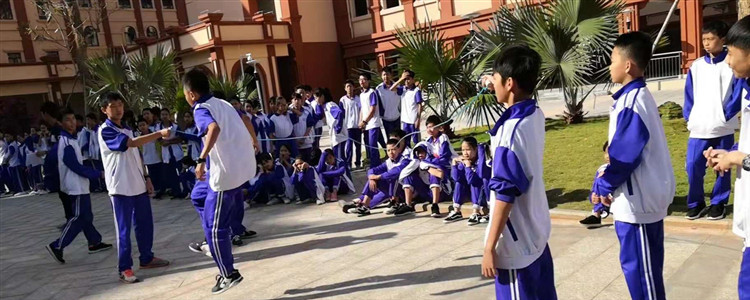 文昌学校坚持开展大课间活动,重视体育发展,注重学生的身体锻炼,提高学生的体能水平,促进学生身心健康全面发展。以创建体育特色校园的教学理念,提倡教学的创新与改革,体现文昌学校“无体育,不清华”的体育精神。