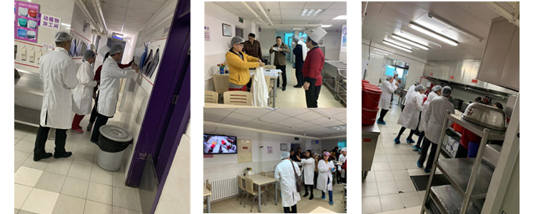 家委会代表在食堂主管带领下,参观食堂的各个操作间及食品加工操作流程。家长们身穿白大褂,戴上口罩、帽子、鞋套,全副武装以后,大家走进冷藏室、加工间、烹饪间、点心间等地参观,实地查看了厨房环境卫生,了解餐具消毒、原料采购、食品加工流程等相关情况,并查看了食堂各项记录、台账,全面了解了学校食堂餐饮管理工作及食品制作过程。