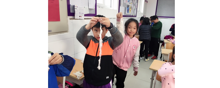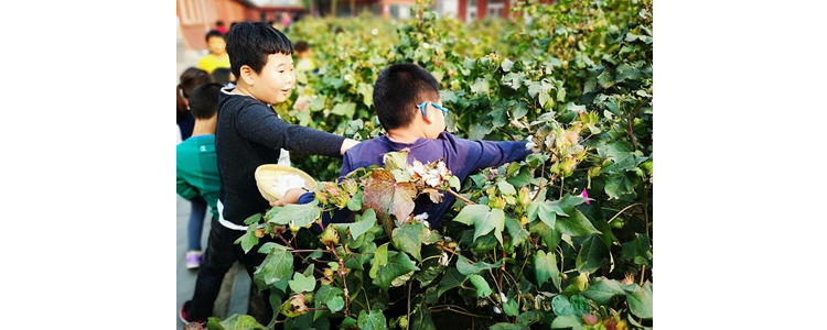 两年来,孩子们在劳动、生产、观察、鉴赏中体验中国传统“耕”“织”文化的魅力,在历经四季寒暑的学习、实践中,体验到了人文、自然与劳动有机结合的共生教育。校园中的半亩棉田,是孩子们探索自然科学的试验田,孩子们在观察、触摸和思考中掌握了棉花生长的奥秘;校园中的半亩棉田,是孩子们亲近大地、劳作耕耘的实践基地,孩子们在棉田里挥洒汗水,体会到劳动的快乐,形成热爱劳动、尊重劳动的正确价值观;校园中的半亩棉田,是老师们进行改革与创新的室外课堂,学科融合、活动式教学都让孩子们体验到自主探究与合作学习的乐趣。