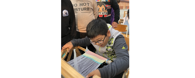 本次丰收节由六个区域组成:采摘区、脱籽区、纺线区、织布区、染布区、缝制区,每个年级各有任务分工。孩子们自己将经过春耕夏耘收获的棉花先进行脱籽处理,然后在纺线机上纺成棉线,这一根根棉线在织布机上来回穿梭,就神奇地变成了一块块布料。织好的布料送到染布区,运用古老又环保的扎染技术进行染色,纯色的白棉布就拥有了华美的色彩。前来参观的嘉宾们被祖国非物质文化遗产的魅力折服,对孩子们纯熟精湛的技艺感到惊叹!他们也都跃跃欲试,很快加入到动手操作的行列中来。