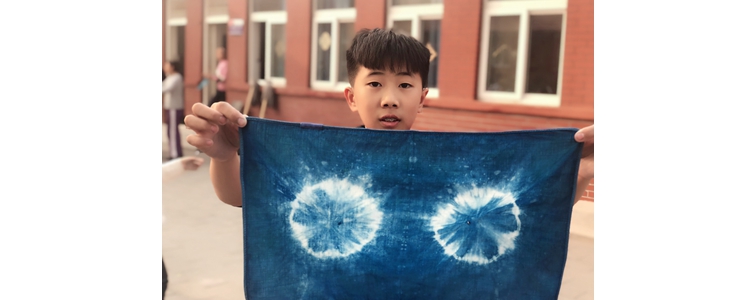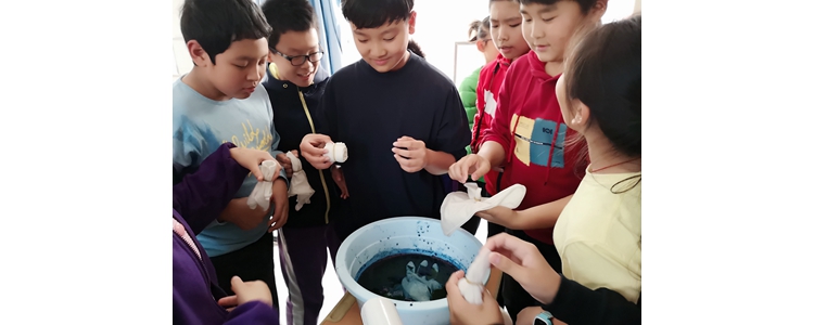 学生正在染布