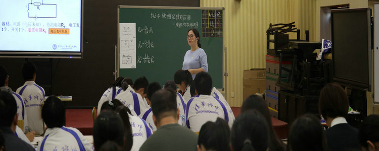 郁静老师的授课主题是“欧姆定律的应用——电阻的特殊测量”。课程中,郁静老师设计了缺少电流表或电压表,如何测量电阻的学习任务,各学习小组合作学习后,给出了多种方法解决问题,并交流了各组的设计成果和设计思路。郁静老师针对学生的回答给予点评,启发学生找出设计方法的共性,由此提出本节课的教学重点“伏阻法”。以九宫格法作为教学辅助手法,以电阻测量、欧姆定律应用为教学线索,采取给定目标任务、小组间合作设计、小组外分享交流、教师点拨总结的教学组织形式,由浅入深、循循善诱,完成了教学目标,匹配了教学内容灵活、开放的特点。下课后,郁老师作了10分钟的说课,对本节课的设计思路等内容进行了阐述。