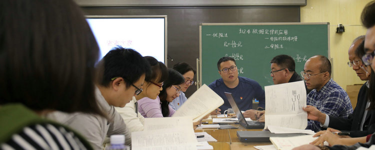 2018年10月18日下午,本学期第二次“新时代新担当新作为”党员示范课展示活动在校党总支和教学处的精心组织下有序进行,此次党员示范课由物理学科的郁静老师担任主讲人。郁静老师第八节课在多功能厅进行授课,全校教师积极听课、学习。课后,各教研组长组织本组教师对此次示范课进行讨论交流。
