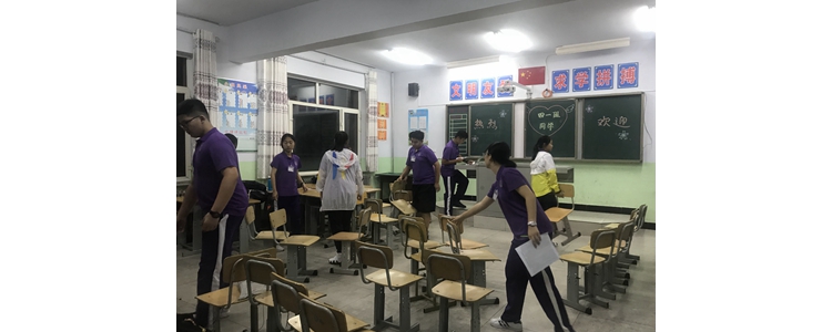经过简单的整理,同学们来到四年级(1)班教室,开始紧锣密鼓地筹备明天的授课内容。主讲和助教团队在一起集体备课:班会课流程,自我介绍如何进行,团体游戏由谁主导,数学课主要内容,需要助教做哪些工作等等。各项工作有条不紊地进行着。