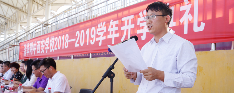 典礼伊始,执行校长徐海鹰发表了热情洋溢的致辞。他首先对1000多名18级新生的到来表示热烈的欢迎,对过去一年师生的付出和成绩表示肯定,徐校长希望全体师生继续以清华人固有的饱满的热情、踏实的作风和创新的精神浇铸梦想,不断创新,积极探索,彰显特色,努力把秦汉帝国办成师生学习的圣地、创新的摇篮和幸福的港湾!