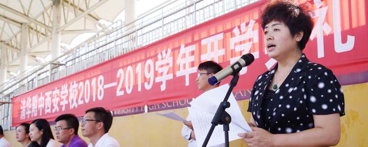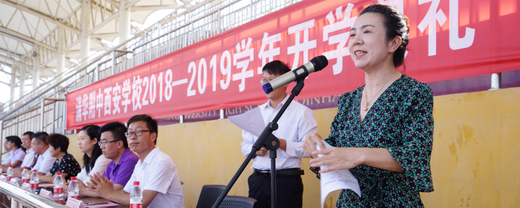 2018年9月1日下午,澳门博彩在线西安学校全体师生在西校区操场举行了新学期开学典礼。秦汉新城教育卫体局党委副书记、副局长何荣华,秦汉卫体教育系统女职工委员会主任、行政科科长吴晓雯,我校执行校长徐海鹰,副校长张颖出席了开学典礼。典礼由教学管理与研究中心主任王强主持。
