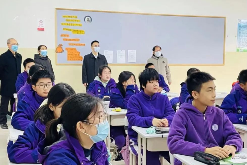 2月7日,曹海翔首先实地走访了郑州学校校园,深入教学楼、操场、报告厅、实验楼等地,对学校优美的校园环境与浓厚的文化氛围给予充分肯定。随后他走进课堂,认真倾听“开学第一课”。课后,曹海翔与老师们亲切交谈,询问课程设置及教研情况,并希望老师们勇担培养高质量人才的责任,助力基础教育改革。