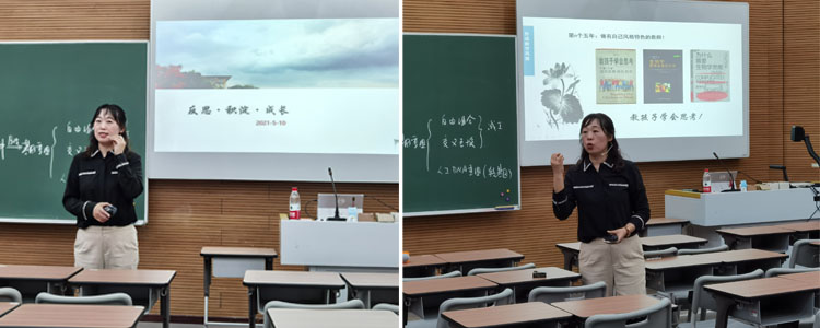 课后,刘健老师以“反思∙积淀∙成长”为题,结合自己的成长历程和教学实践,分享交流具有个人特色的“沉淀—成长—失落—崛起”的成长轨迹,讲述了自己是如何从一个新手教师成长为研究型教师,以及对于个人发展和团队建设的探索和思考。