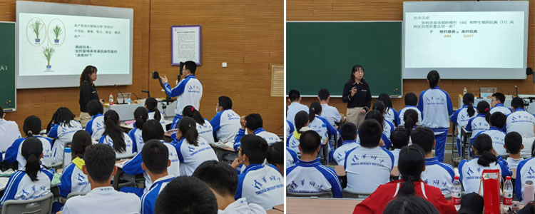 首先,刘健老师为大家呈现了一节基于单元教学设计的《杂交水稻与基因重组》研究课。整节课基于“深度教学”理念,在引领性的学习主题中,刘健老师运用层层递进的学生活动教学策略,以问题驱动的方式带领学生沉浸于课堂,充分发挥学生的自主能动性,鼓励学生自主思考、团队合作,积极表达和质疑,实现学生对知识的自主构建,以及分析归纳、推理等科学思维能力的提升。