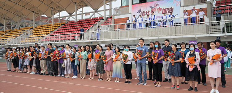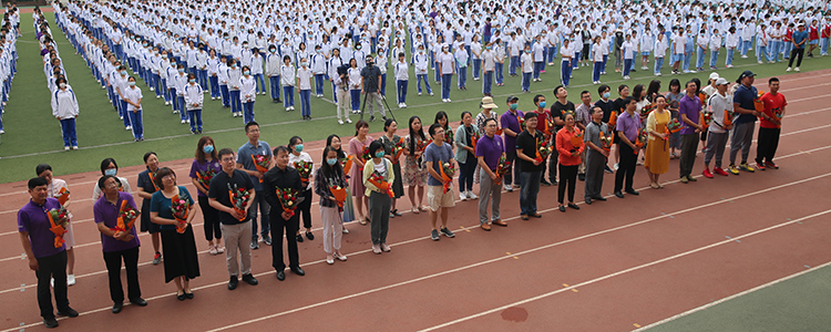 同时,他们也带领着初三全体学生对不辞辛苦教导自己三年的老师们们献上花束,深深鞠躬,喊出感谢的话语表达感激之情。