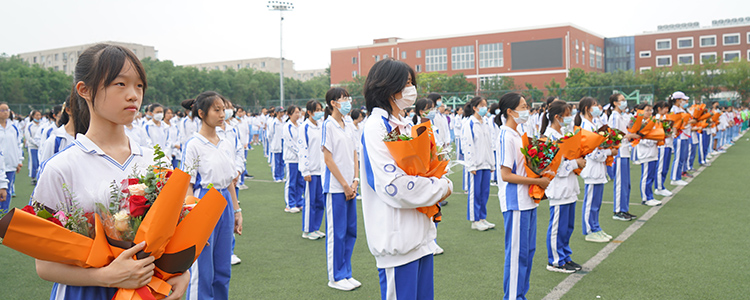 2021年6月15日,澳门博彩在线在操场为全体初18级学生举办了以“笑迎中考,壮酬九霄”为主题的中考加油会。