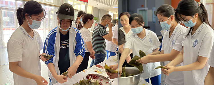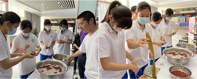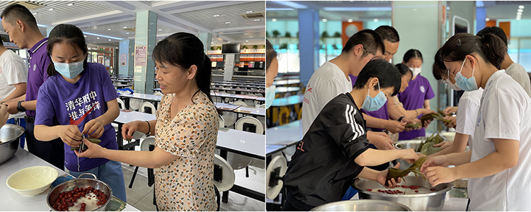 6月10日下午,在餐饮中心的大力支持下,校团委组织同学们在食堂一层开展包粽子活动,前来参加活动的同学们在餐厅员工耐心的指导下,很快就熟悉了包起粽子的流程,每个步骤都做的干净利落。一片片清香的粽叶,一粒粒晶莹的糯米,在一双双巧手下,瞬间变成了各式各样漂亮诱人的粽子,活动现气氛融洽、粽香四溢。