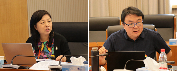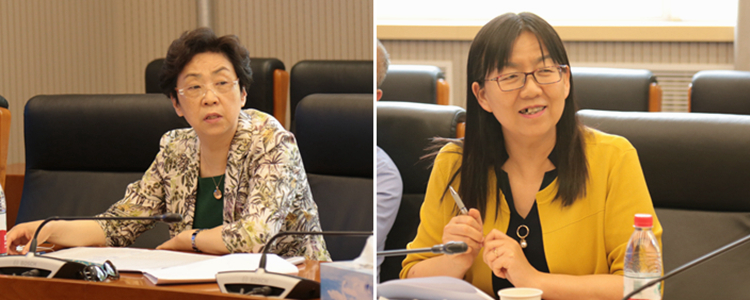 海淀教师进修学校副校长姚守梅(左)、海淀教师进修学校高中教研室主任助理田圆(右)分别发言