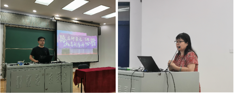 初18级年级组长张彪(左)、初19级唐秀梅老师(右)介绍经验