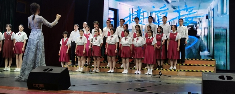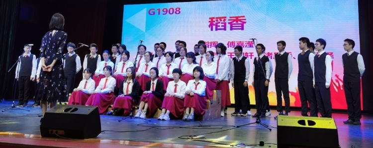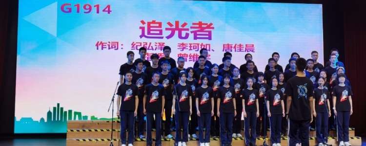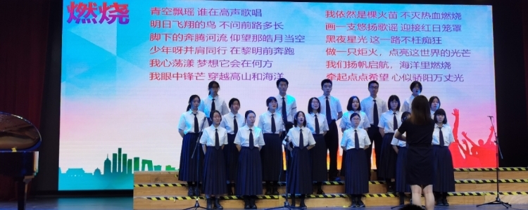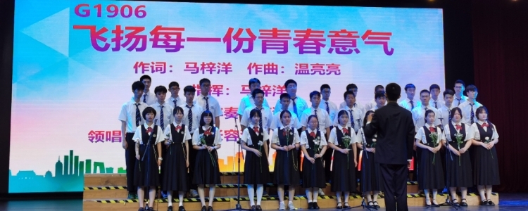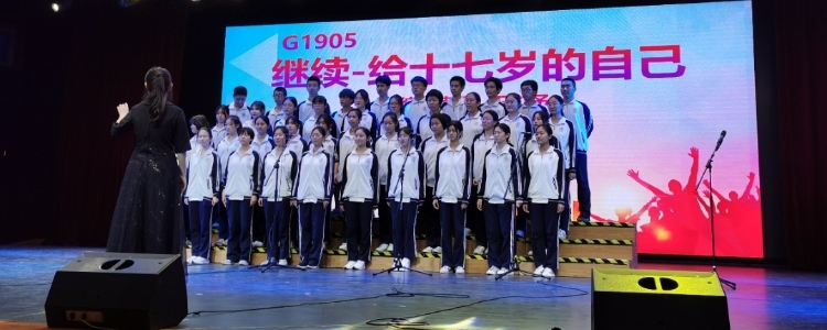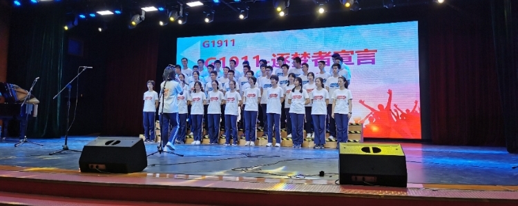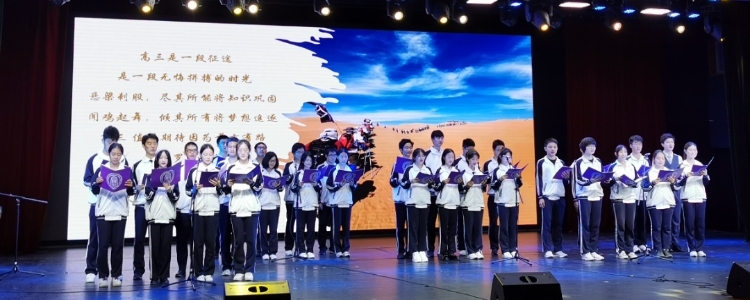 活动的后半段是“歌以言志”合唱比赛,音乐教研组王金峰老师、周鹭以及年级副组长周喆老师承担评委工作。此次活动主题为“歌以言志”,每个班都表演了精心准备的自创歌曲合唱,以表达对即将到来的高三生活的期冀和决心。各班不仅歌声悠扬,更是在节目中融入了舞蹈、说唱、朗诵等多种表现形式和钢琴、吉他、唢呐等多种乐器,将现场气氛一次次推向高潮。同学们在歌声里诉说了对青春的理解,表达了未来努力的决心。最后,全场各班学生分别与新任班主任上台合影,正式揭开高三生活的序幕,共同迈向这一段为梦想全力以赴的新征程。