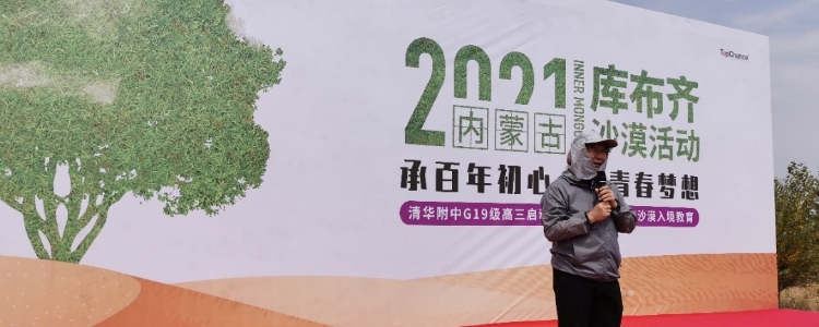 王殿军校长在银卡塔拉沙漠植树仪式上讲话