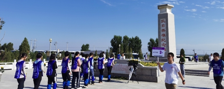 穿出沙漠后,同学们还前往了恩格贝抗日英雄纪念碑进行了祭扫活动。“你们没有离开,而是活在了我们每个人的心中”,同学们手持菊花,向英雄们致敬。