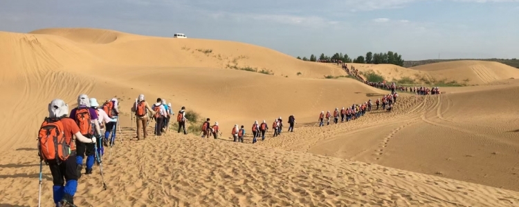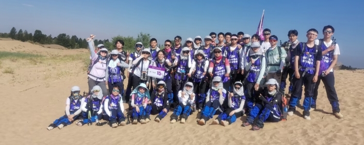 7月12日下午,高19级全体师生一起来到库布齐沙漠,开始为期两天的沙漠穿越行动。随着王殿军校长的一声发令枪响,师生相继跨过起始门,开始接受烈日的考验。困难并未吓倒坚强的人们,各班师生排成一队,顶着风沙穿越沙山。经过四个多小时的拼搏,走过直线距离八公里,实际距离十三公里的大漠,师生们抵达营地开始露营。夜幕降临,星辰铺满苍天,师生以苍茫大漠为舞台,浩瀚星空为布景,点起篝火尽情舞蹈。当焰花冲天而起,点亮苍穹,年轻学子的梦想,也随之起航。