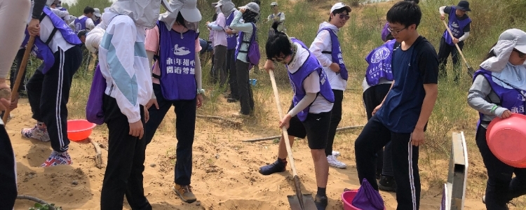 7月12日上午,全体师生来到了银肯塔拉沙漠植树基地,在这里师生种下了近300棵杨树,为祖国的西部生态改善贡献自己的一份力量,也种下一片希望。