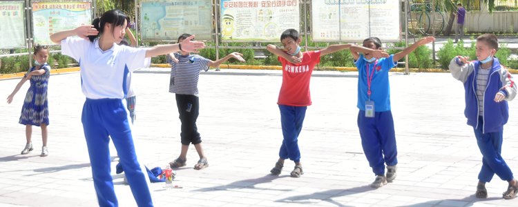 附中支教学生带领八一爱民学校学生排练文艺汇演节目