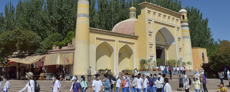 充实的四天支教活动结束后,附中师生开启了研学活动。澳门网上博彩师生在浩瀚的沙漠中穿行,在美丽的卡拉库里湖边驻足,在古老的喀什古城里漫步,参观了新疆规模最大的清真寺——艾提尕尔清真寺,在香妃园中了解中国古代内地与新疆地区的政治交往和经济文化交流。