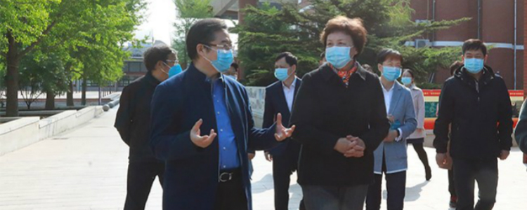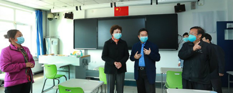 在检查调研过程中,附中校长王殿军、党委书记方妍介绍了附中为毕业班学生返校学习采取的一系列具体措施。接到北京市教委试开学通知后,附中第一时间部署高三学生返校工作,全面准备,及时做好预案,确保疫情防控和试开学工作万无一失。