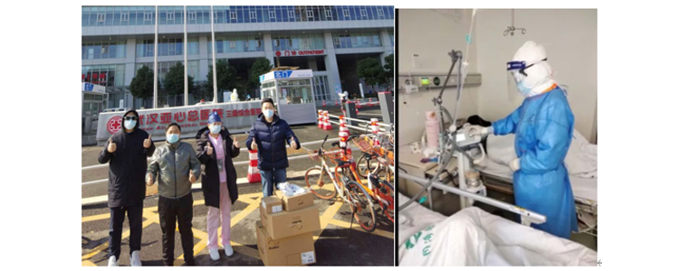 左:武汉当地医院接收呼吸机右:捐赠的呼吸机投入使用