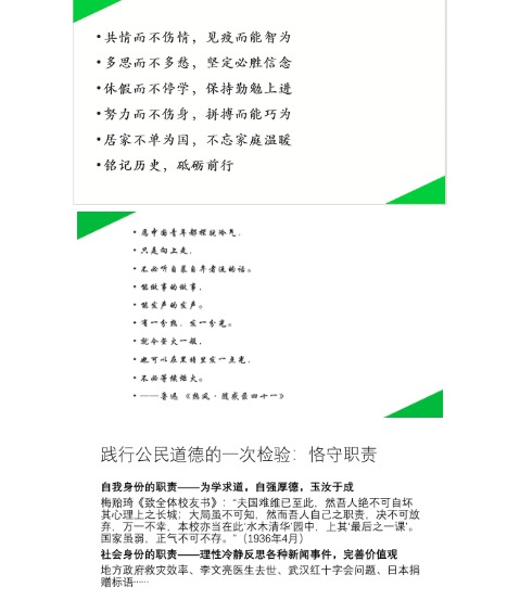 同学们,“风声、雨声、读书声,声声入耳,家事、国事、天下事,事事关心”。网上有人说,没有疫情教育的“停课不停学”,学了也白学;我们不能“躲进小楼成一统,管它春夏与秋冬”,我们应该铭记这次灾难带来的彻骨之痛。 “死亡,是一个人的悲剧,遗忘,是一个民族的悲剧。”面对病毒的挑战,我们应该坦诚应对,敬畏自然。