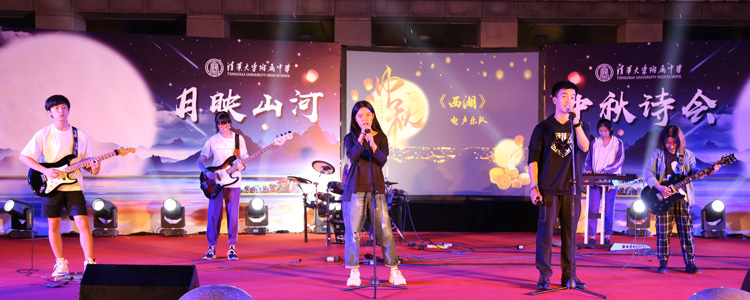 在“朗月伴人归”一章中,王殿军校长、张洁副书记和政史地教研组联合党支部的老师们为大家带来了朗诵《五千年一轮满月》,同学们看到老师表演的节目,欢呼喝彩声不断。接下来的两个诗词吟唱节目:《关山月》和《水调歌头》,浅吟低唱,古韵悠扬,余音绕梁,不绝于耳。古筝声里《云裳诉》,《千古明月》细细说,精彩的朗诵将中华文化的深厚底蕴表达得唯美隽永。
