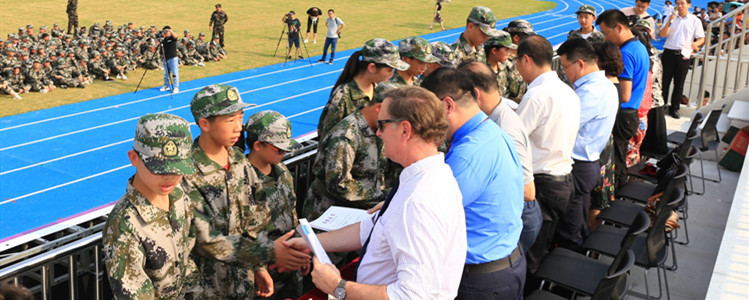 随后各班学生代表向教官致敬并赠送感恩卡。这是常清学子对陪伴教育他们的教官发自内心的情谊,也是接受常清厚德与感恩文化洗礼的第一课。