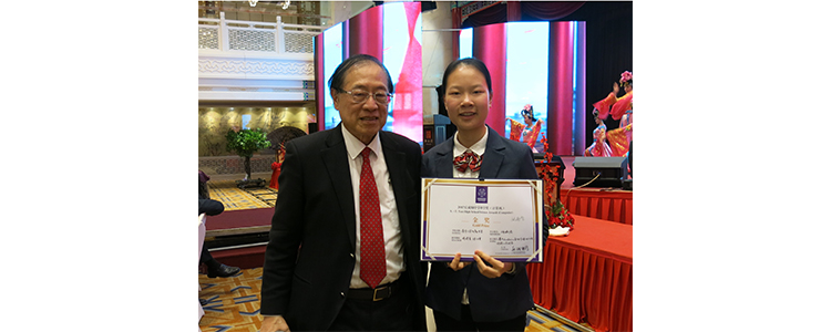 何婉榕(左)与大赛总主席菲尔兹奖获得者丘成桐教授合影